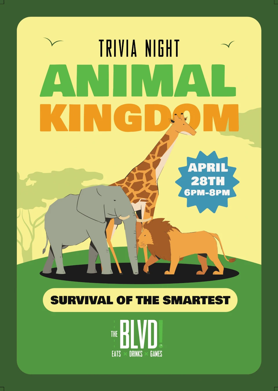 Trivia Night Animal Kingdom Survival of the Smartest April 28th | 6pm - 8pm