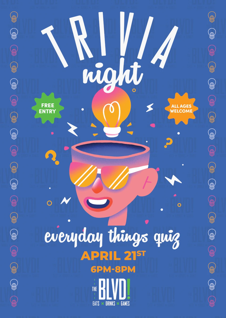 Trivia Night Everyday Things Quiz April 21st | 6pm - 8pm FREE Entry All Ages Welcome