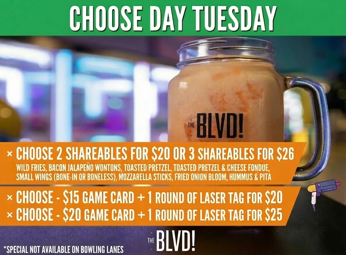 *SPECIAL NOT AVAILABLE ON BOWLING LANES
