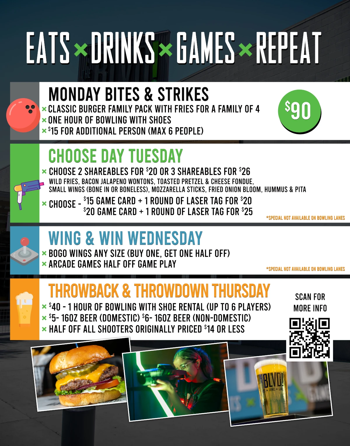 *SPECIAL NOT AVAILABLE ON BOWLING LANES